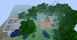 I've also got a little apiary semi-hidden in the middle of the path between the four buildings: (I managed to, erm, "liberate" a few apiaries from a couple of villages I happened across in my Mystcraft worlds)