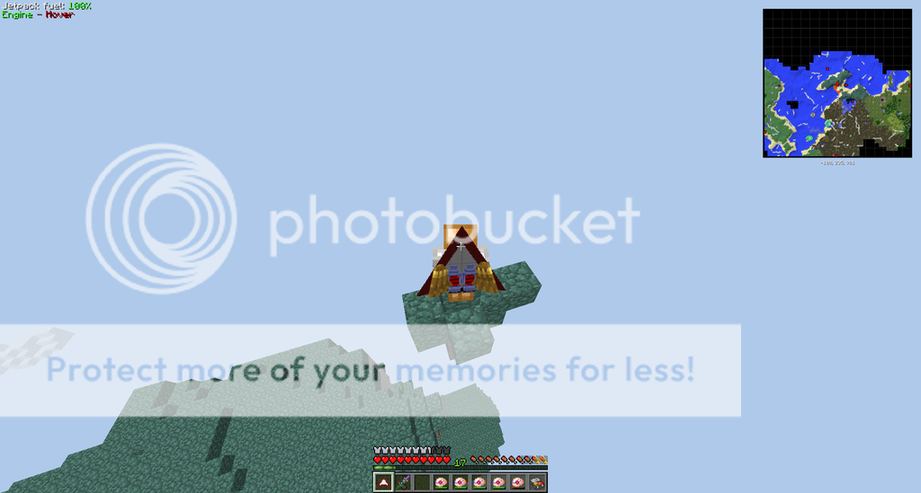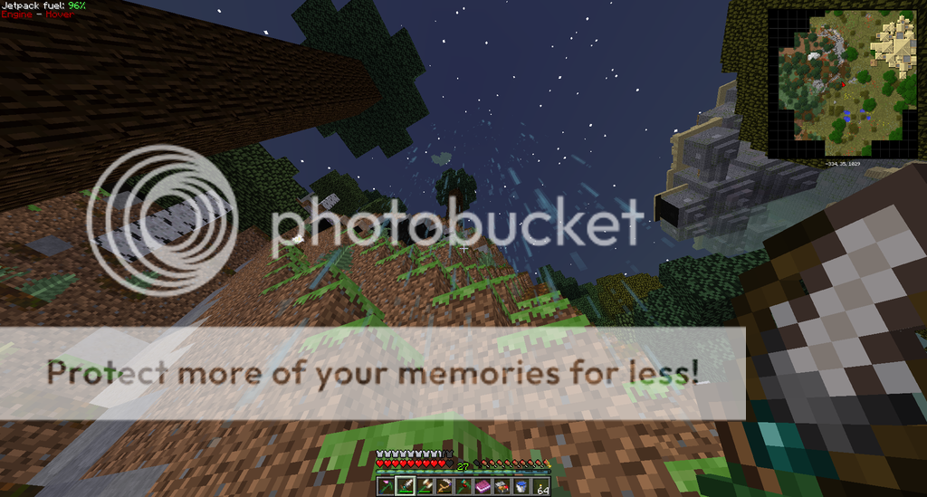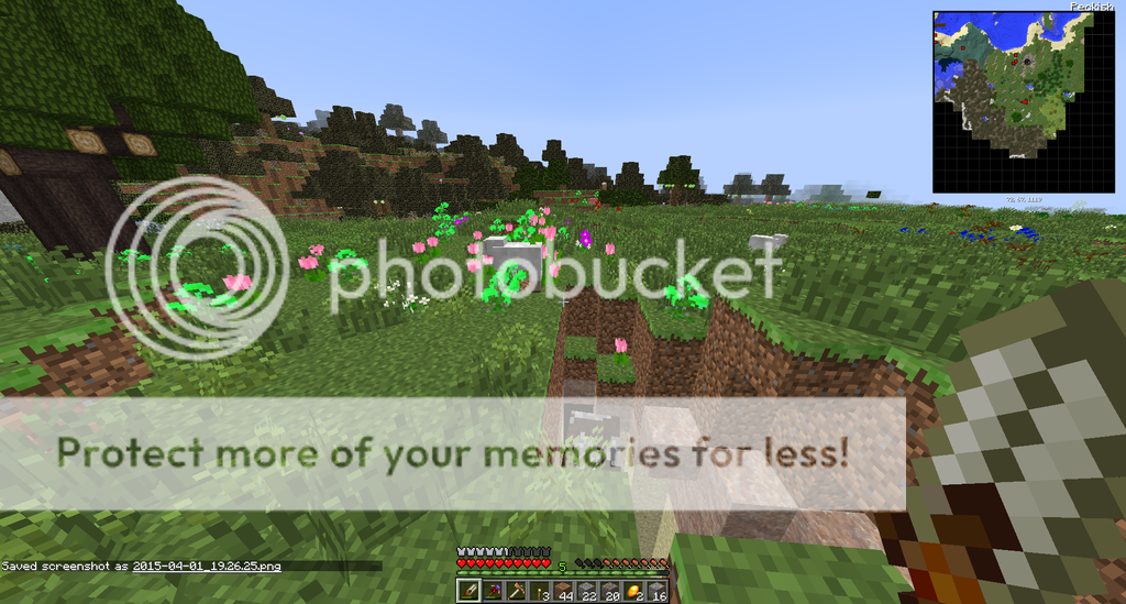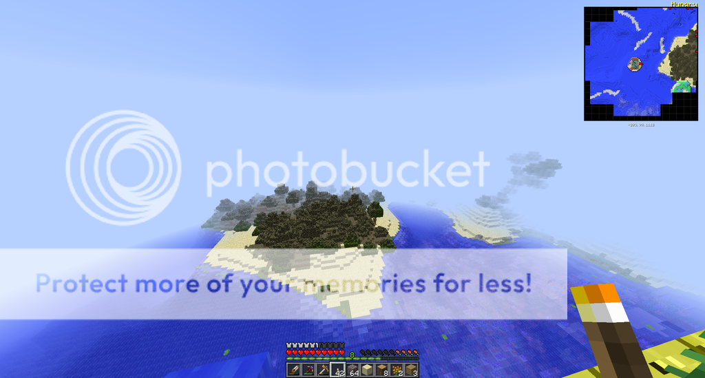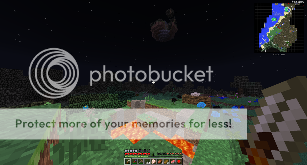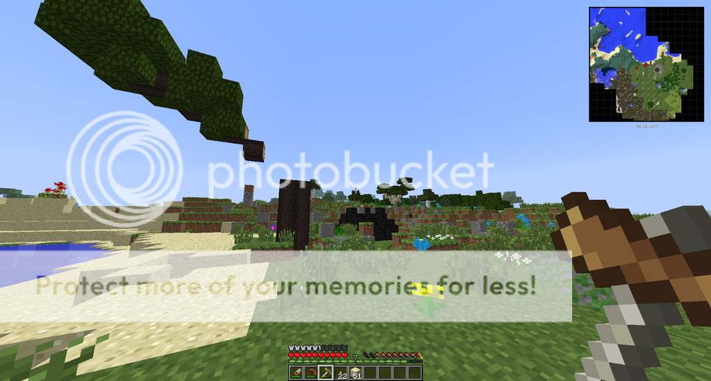 Thoughts of linking the mountain tops with platforms and bridges. Living high in the air above the world. It might be safer then being down here with the monsters. I will see what the world brings me, but first I must make myself safe against the monsters. There's a small scrubland of a forest, a few blocks of wood quickly stolen while trying to stay out of the thorns, then right up the side of the mountain.