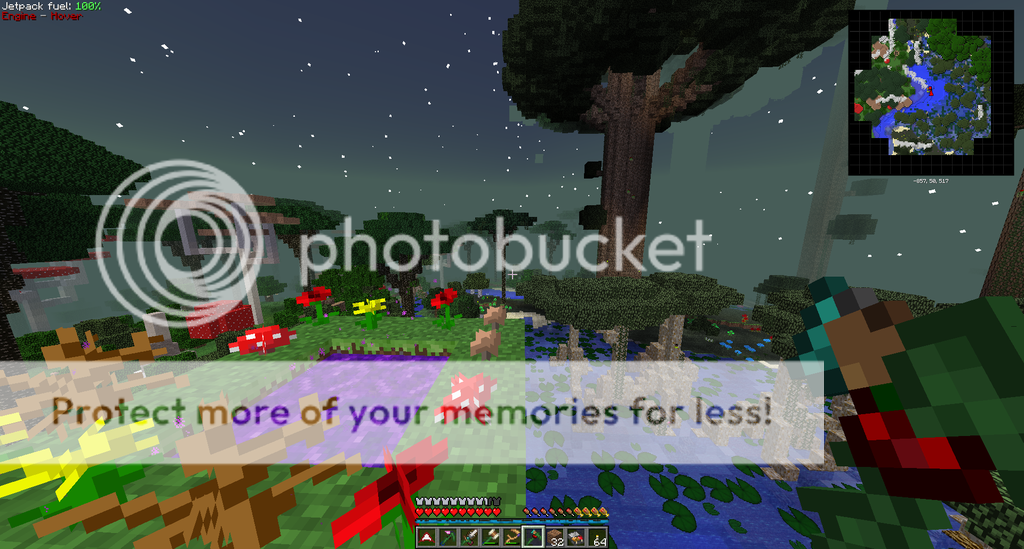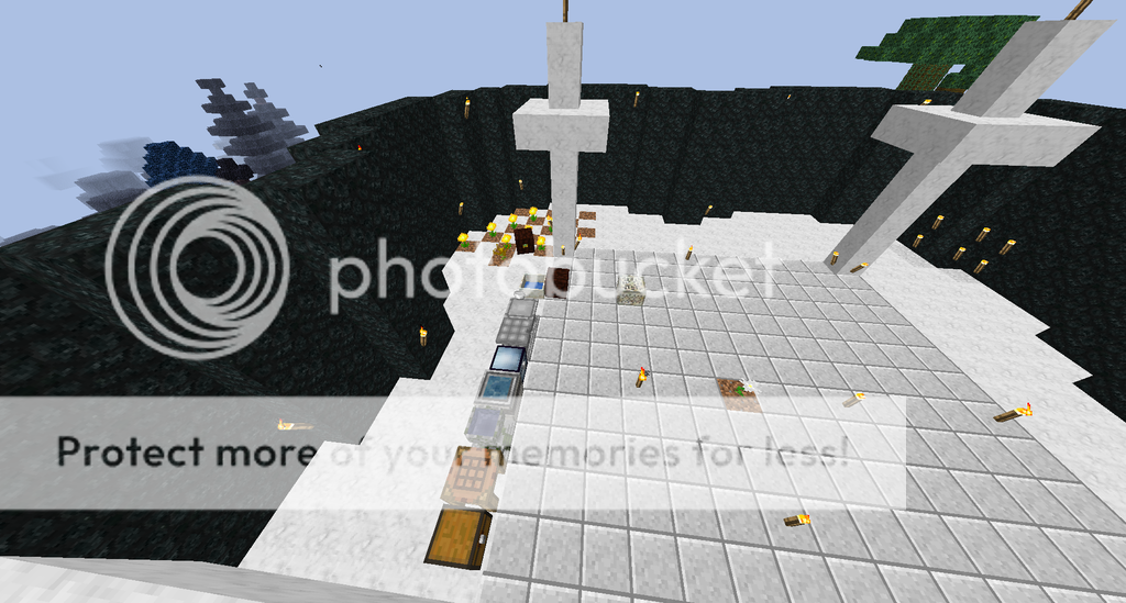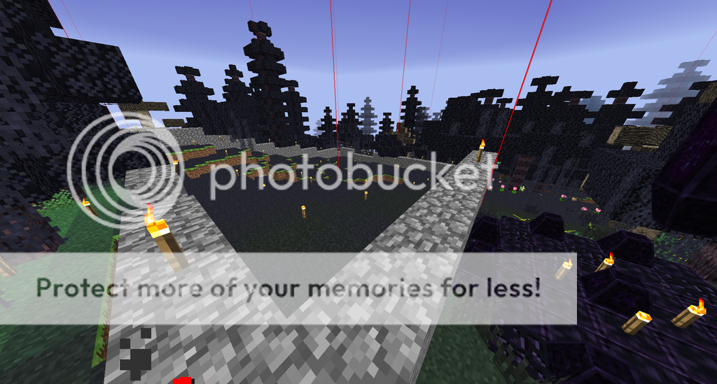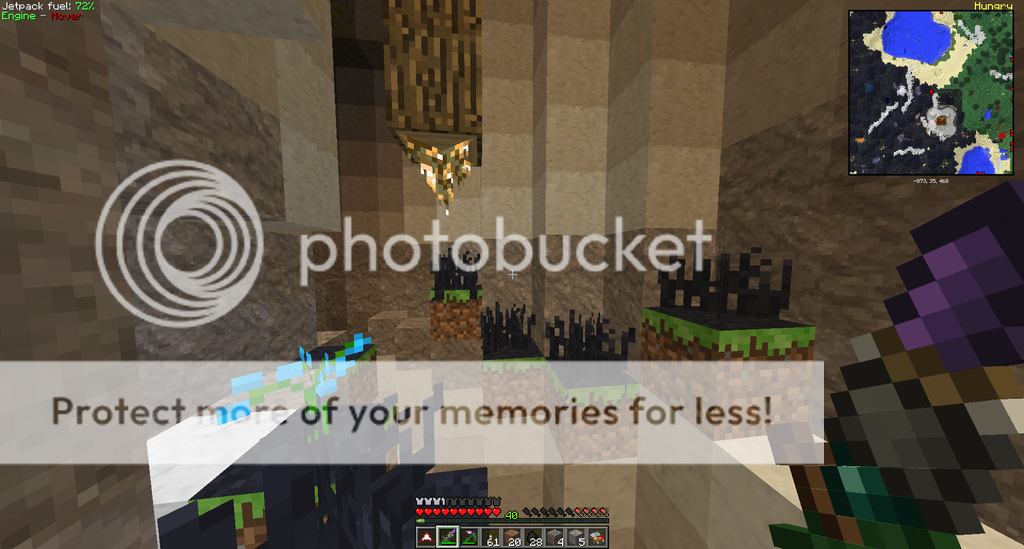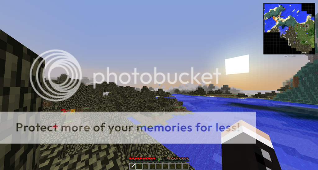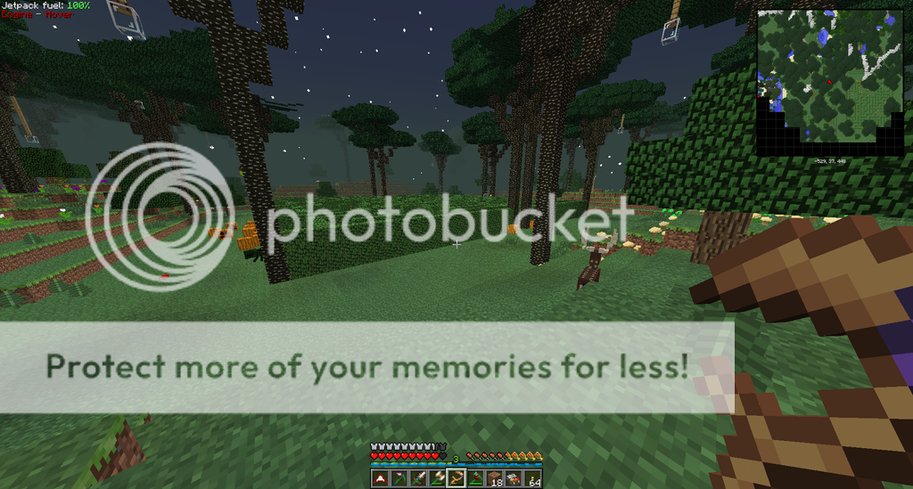 Thoughts of linking the mountain tops with platforms and bridges. Living high in the air above the world. It might be safer then being down here with the monsters. I will see what the world brings me, but first I must make myself safe against the monsters. There's a small scrubland of a forest, a few blocks of wood quickly stolen while trying to stay out of the thorns, then right up the side of the mountain.
