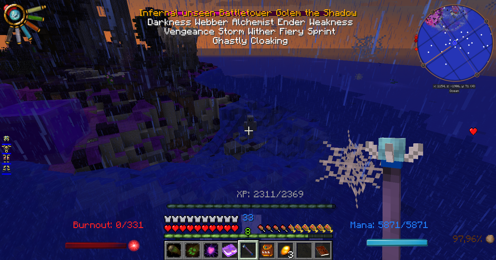 As mentioned before, i went into an dungeon near the already mentioned golem. Deeper inside, a blood moon started, and at the exact same moment i was surprised by an