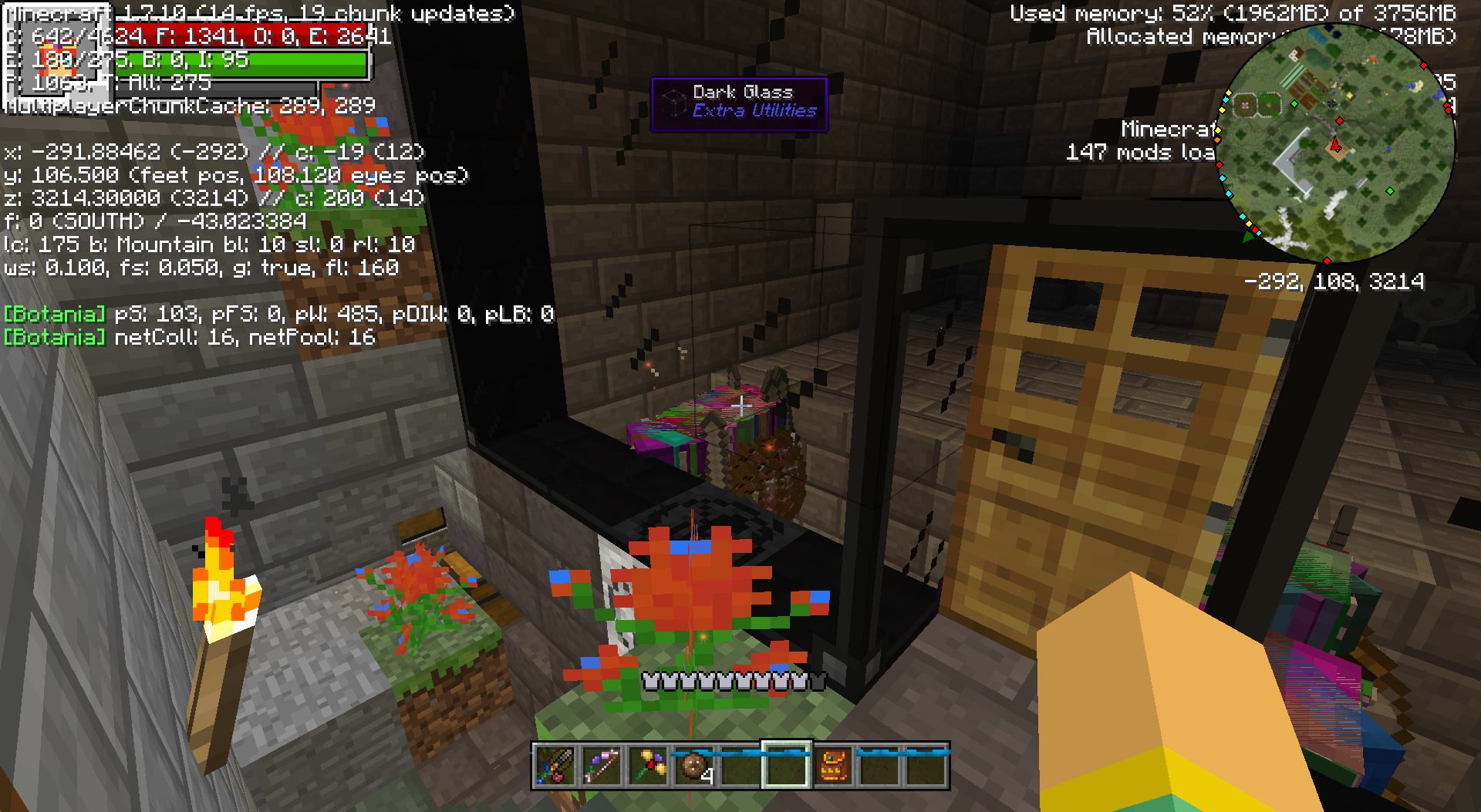 @GreatOrator I've confirmed that the accumulation of lag-causing 'ghost' entities with the life imbuer from Botania occurs with this version of the modpack as well. It is not caused by either the Optfine mod and/or the Spax texture pack (ie I removed both and it still occurred) as you can see in the screenshot below. The only way to clear these 'ghost' entities and resolve the lag is to save and quit to title and reload the save. Then remove the life imbuer so it doesn't happen all over again.