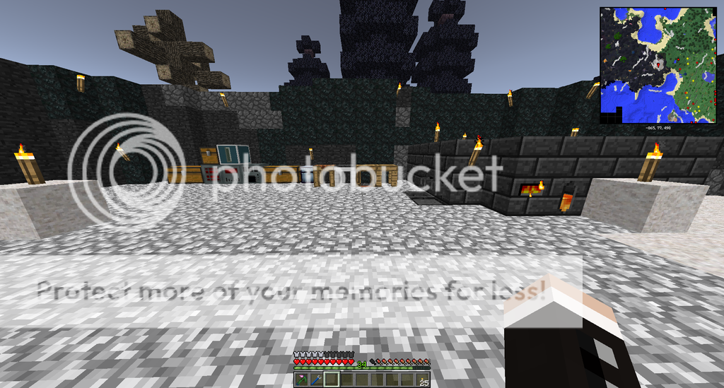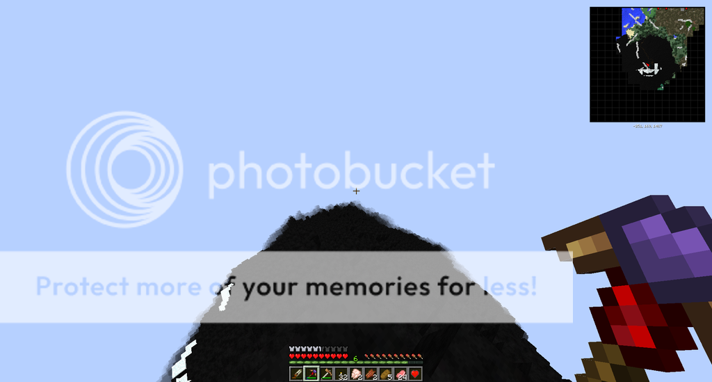 Thoughts of linking the mountain tops with platforms and bridges. Living high in the air above the world. It might be safer then being down here with the monsters. I will see what the world brings me, but first I must make myself safe against the monsters. There's a small scrubland of a forest, a few blocks of wood quickly stolen while trying to stay out of the thorns, then right up the side of the mountain.