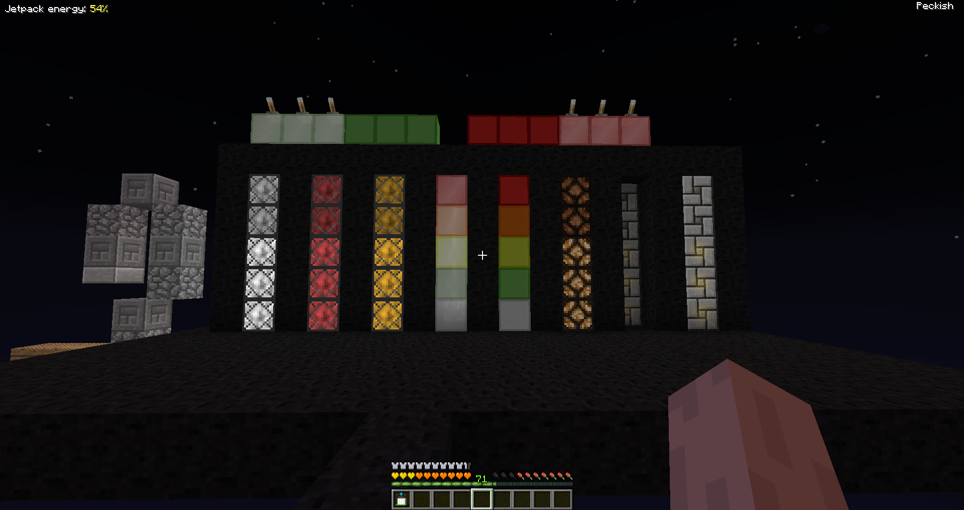 Can't see the bottom of his, but here's the bottom of mine. Not symmetrical due to how heads can be placed on a "wall", as I started the front too far back, I couldn't add the 2 more rows without redoing it all. I was able to craft all the staff cores (thinking I needed the staff cores for the primal staff, not realizing it's merely wand cores and staff research), then the staff core of the primal, with no instability I could tell of. Haven't lost an item except once when I forgot to have an aspect ready first. Runic matrix is above the one with my crosshairs.