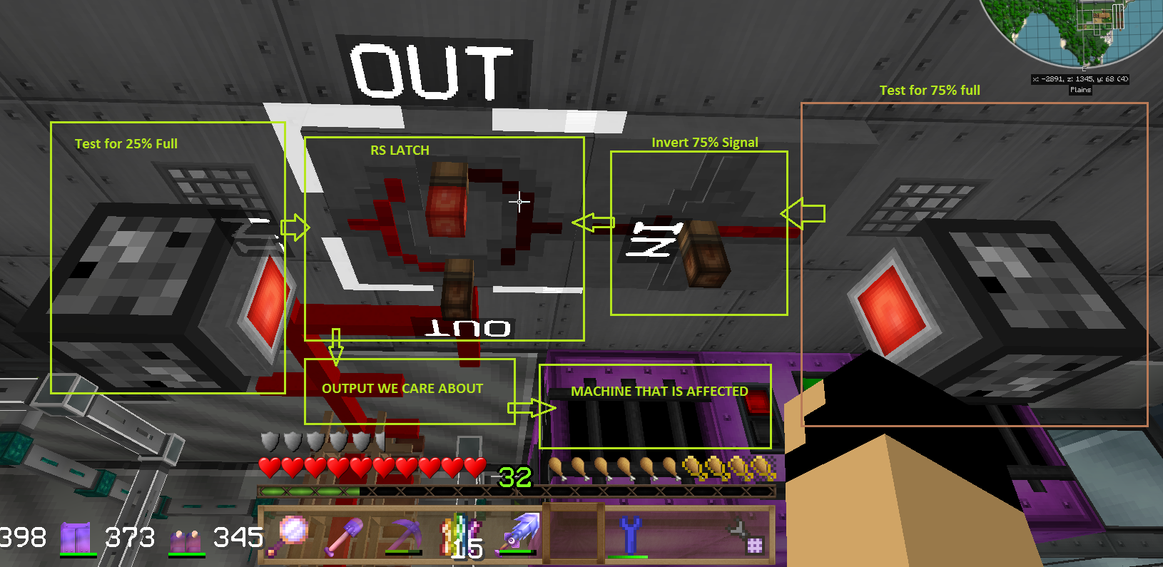 - It doesn't work. In this case, the RS-latch is doing exactly the opposite of what you want it to do- that is, whenever the buffer drops below 25%, it forces the reactor off, and vice versa. To fix this, simply swap the positions of the inputs (or outputs, I'm not sure, although it doesn't really matter) by shift-clicking the latch with a screwdriver. This is what ratchet freak meant by "mirror".