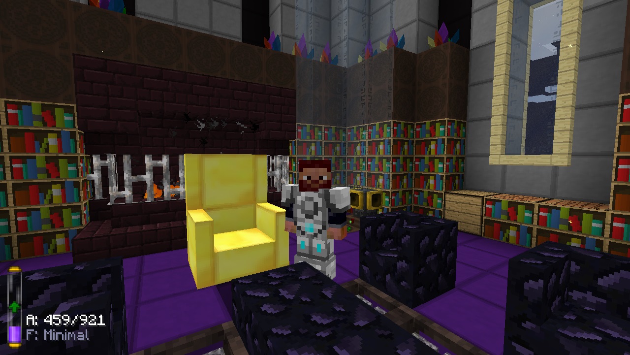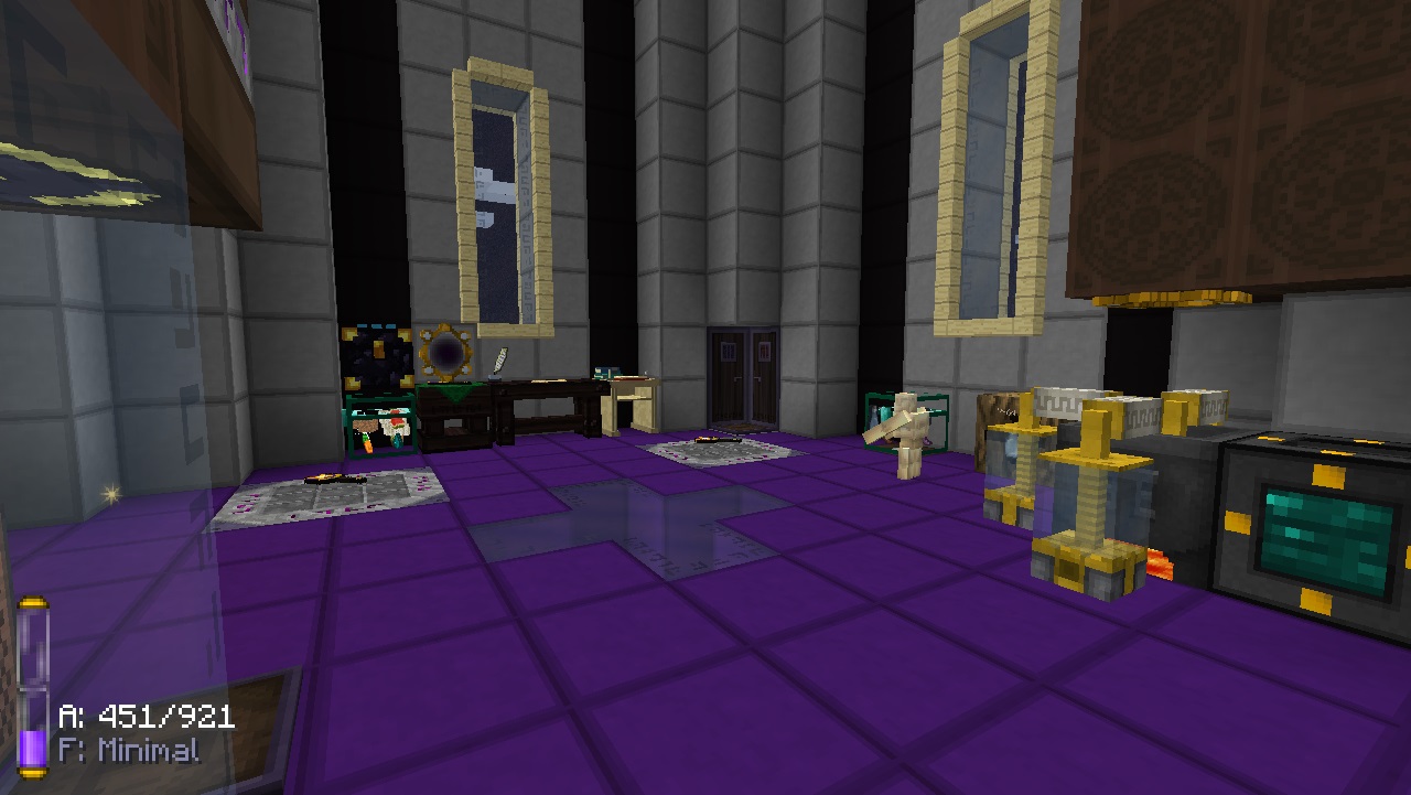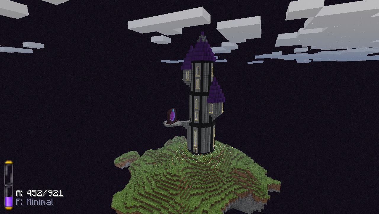 Couple of shots of mostly finished warded stone thaum tower. Pretty basic tower design, permanent day void world (my matter fab solar farm is on the roof), 99% impregnable atm, could be made 100% easily.