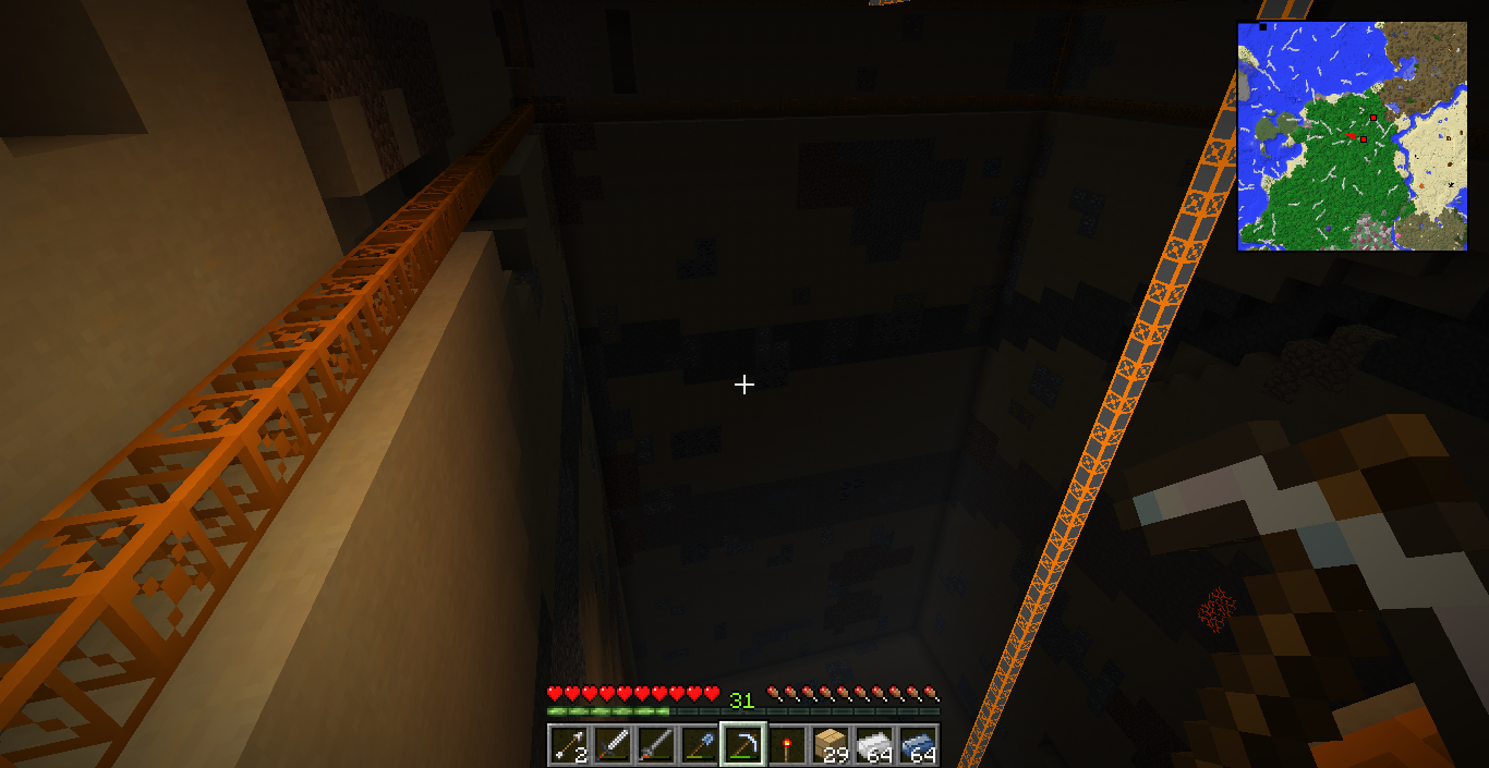 In the last map I did have a quarry and I setted it up beneath my machine's room. I didn't show it because I only got 20 Iron and about 8 redstone. Now this one was a success!