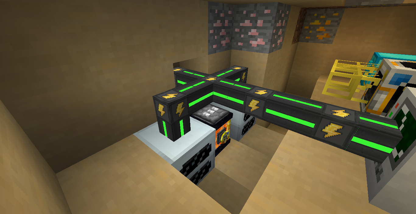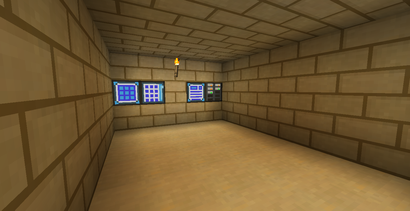 So, now we have the machine's room! It's a bit diffrent, but not much! I did put a pulverizer because it seems like Mekanism can't process nether ores and some other stuff.