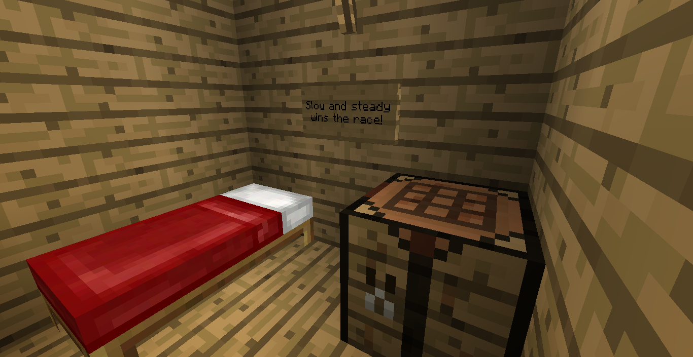 But let's go to the SUPER-Room!View attachment 6226View attachment 6228So, a stair way down...Looking good so far...View attachment 6229View attachment 6230What about that? Like it? So, first of all, we have the chicken pen:View attachment 6231Then we have the small wheat farm:View attachment 6232But finally, we have the cute not so cute house:View attachment 6233View attachment 6234"Slow and steady wins the race!"...I was certainly not the one writting that...Just FYI,View attachment 6246