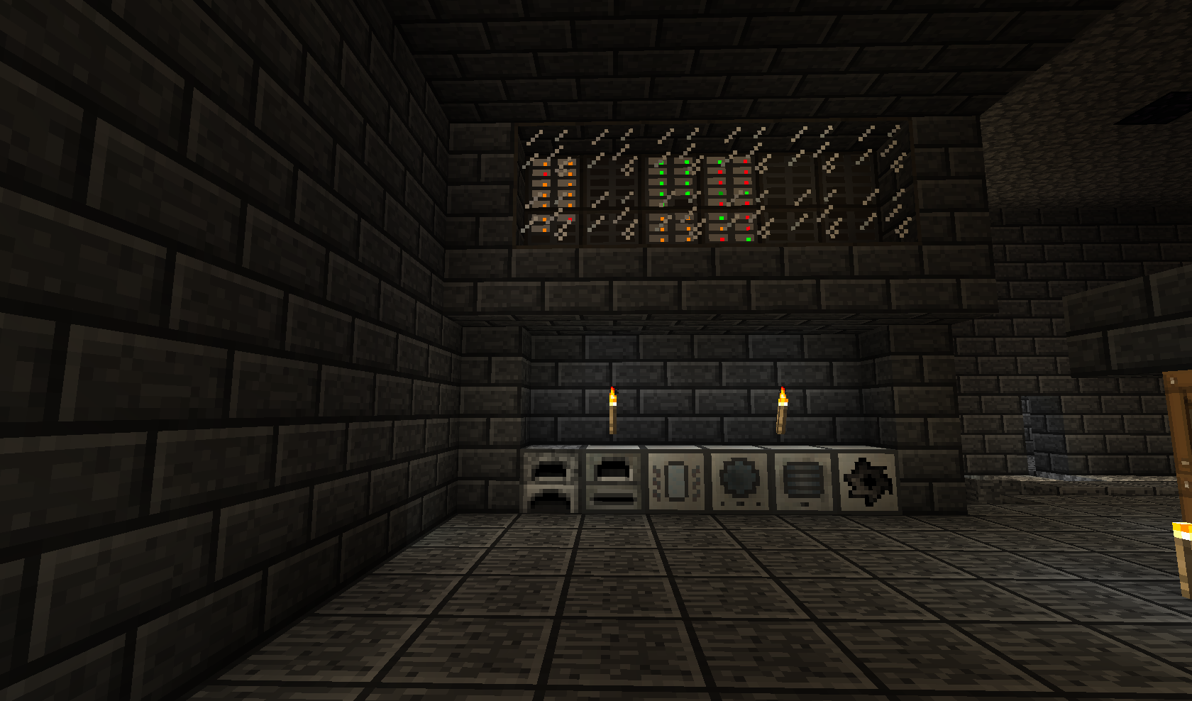 Here's a tiny little update on my build. The mob spawner/dark rooms. The lever controls the lights in the floor as well as deactivating the auto-spawner. The button controls the entrance into the room. The lever is connected to everything using MFR rednet cable, just on the default placement. The button is on a separate mfre rednet cable, using a rednet controller and t-flipflop for controlling the entrance. The entrance is just a disguised drawbridge.