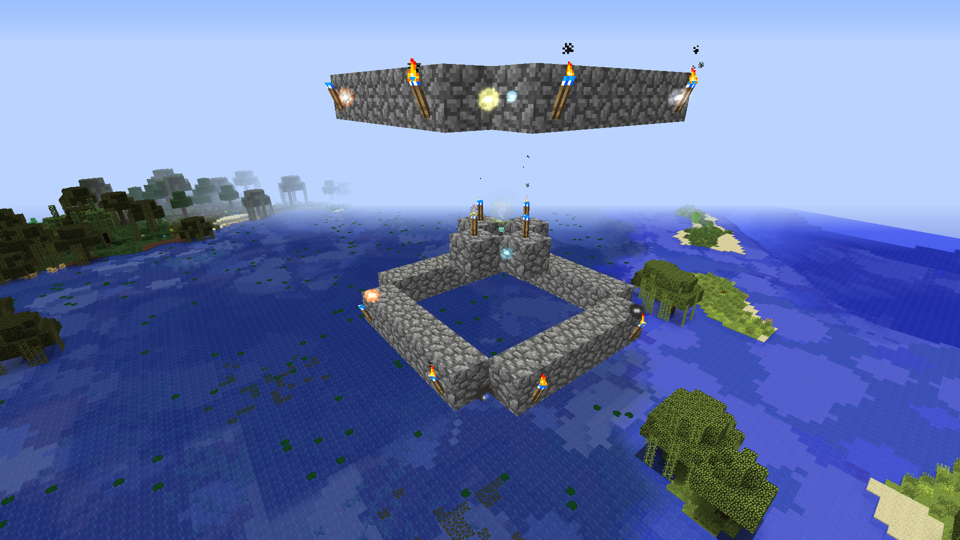 The set up if anyone is interested out there, each torch set to 3x3x3 and 400%. Need the torches on the corners so the outside nodes recharge quicker or else they're just sucked dry.